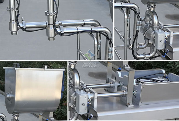 2、配帶攪拌功能,解決了,辣椒醬等顆粒物料的分層現象,并且使灌裝更加精確。