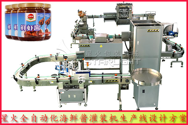 星火海鮮醬醬料灌裝設備海鮮醬醬料機組成的灌裝生產線展示