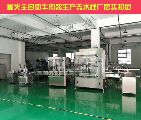隨著社會的不斷發展,近年來牛肉醬行業的快速發展擴大了牛肉醬灌裝生產線的市場需求,各式各樣的牛肉醬灌裝機設備在市場上的不斷出現,而且被各企業廣泛應用著,并且在企業的生產線中牛肉醬灌裝生產線也有著重要的地位。各企業對全自動牛肉醬生產流水線的要求也越來越高,選擇一臺適合自己的生產線也是很重要的,我們星火的這臺全自動牛肉醬生產流水線主要是為了大顆粒灌裝設計的,相對市面上的牛肉醬灌裝生產線,我們公司的這款生產線在灌裝大顆粒或者粘稠物料的時候可以保證物料的完整性,不會出現卡住或者堵住下料口,而且灌裝均勻。